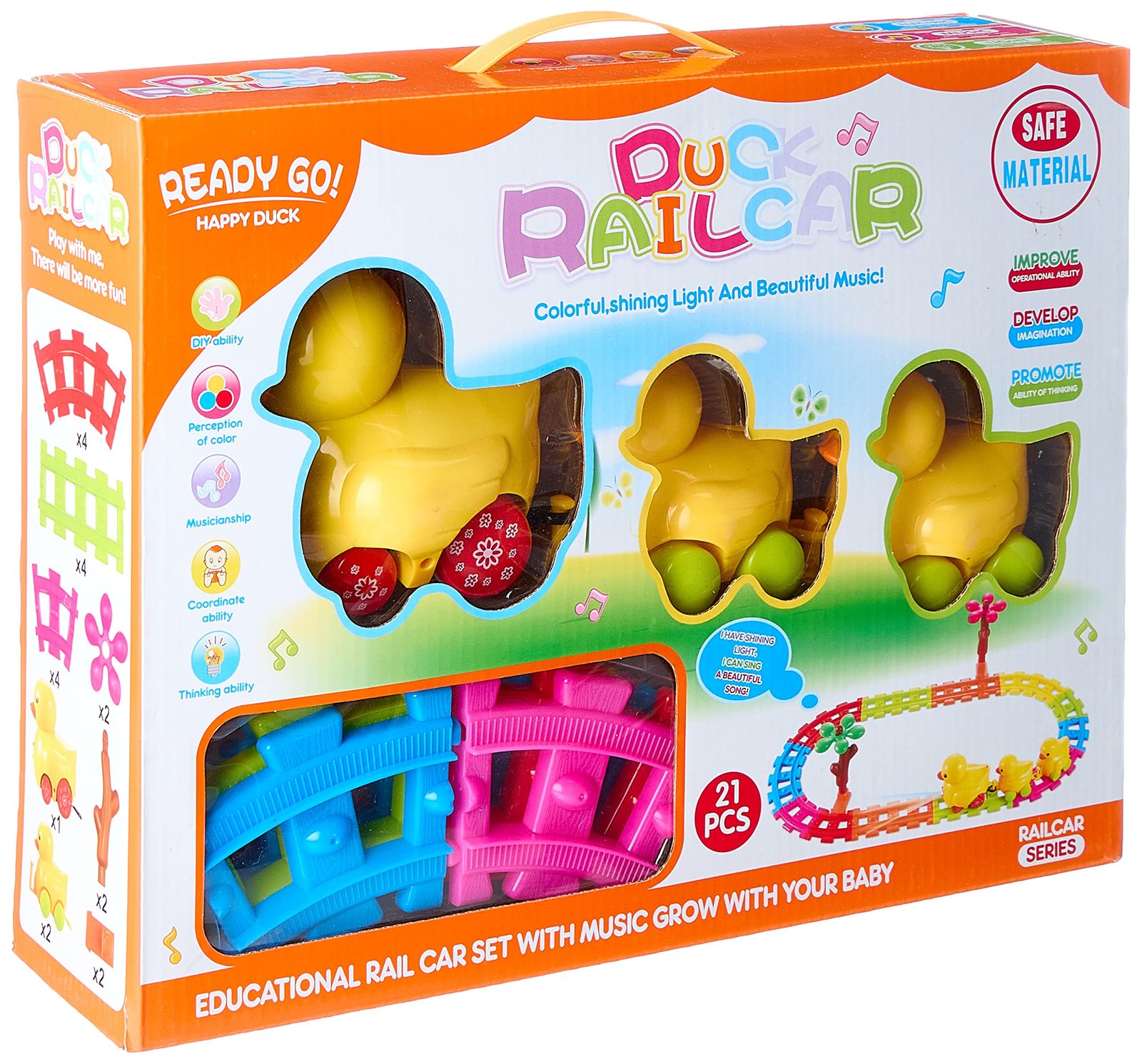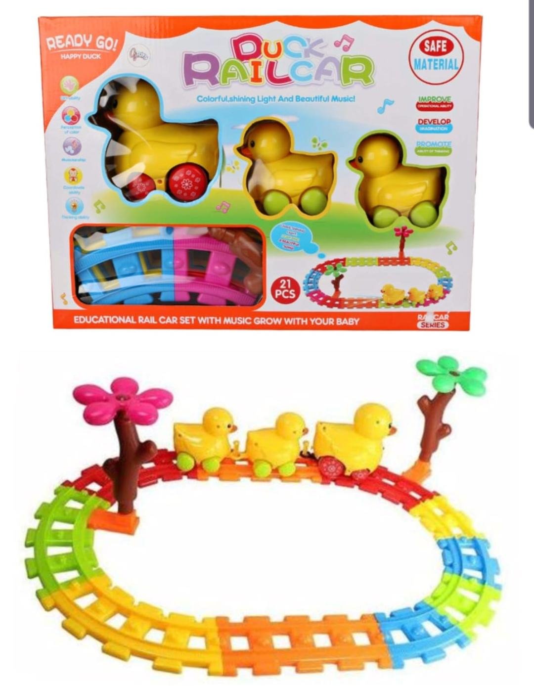 🔧 21 Pieces Set – Complete track + duck cars included