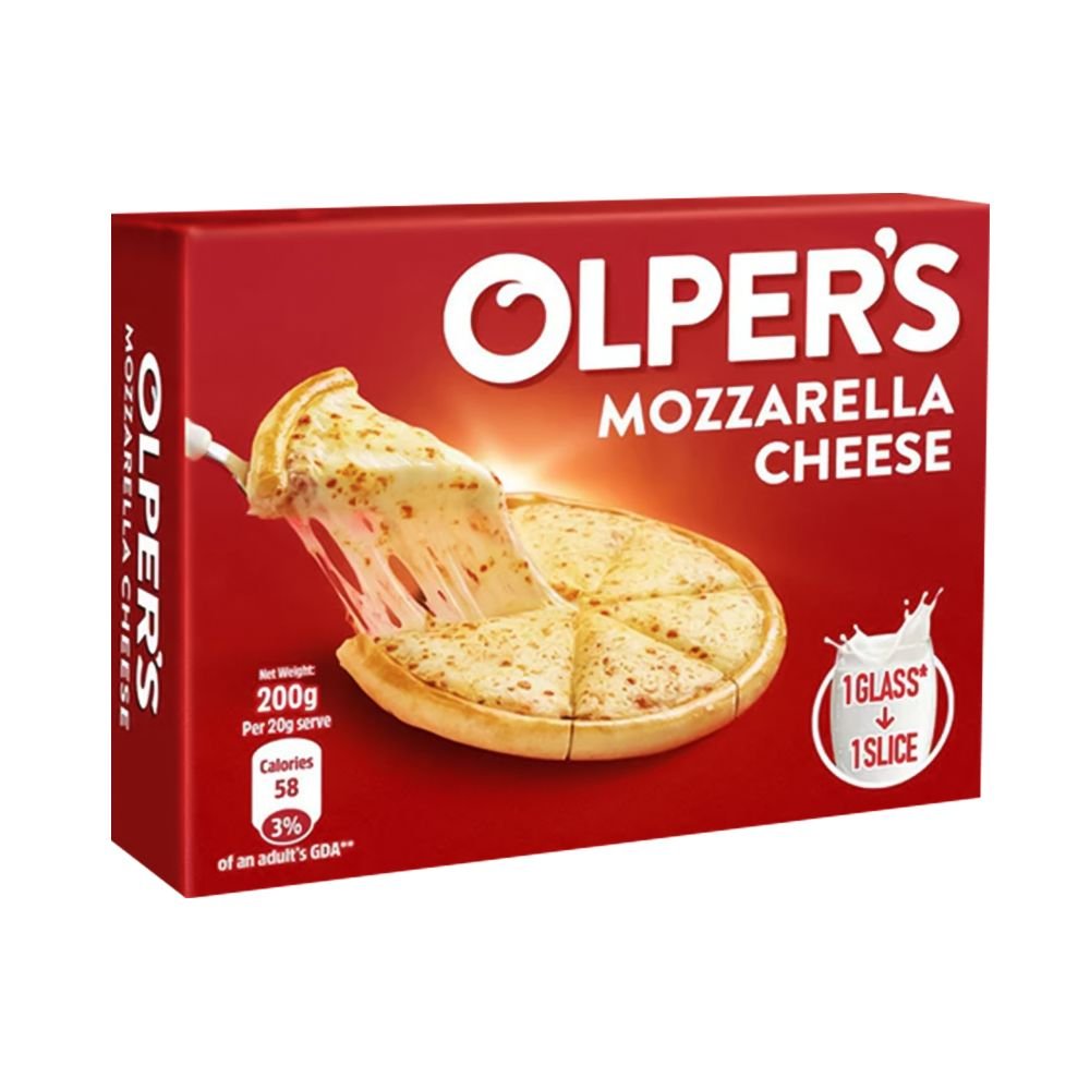 Olpers Mozzarella Cheese, available in a 200-gram package, delivers a rich and creamy texture, ideal for enhancing a variety of dishes, from pizzas to salads.