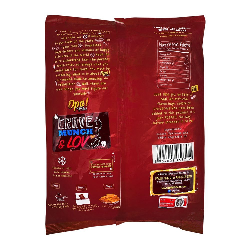 Opa Fries Super Chunky 900g 12Mm are perfect for those who enjoy crispy, golden fries, ideal for serving as a side dish or snack.