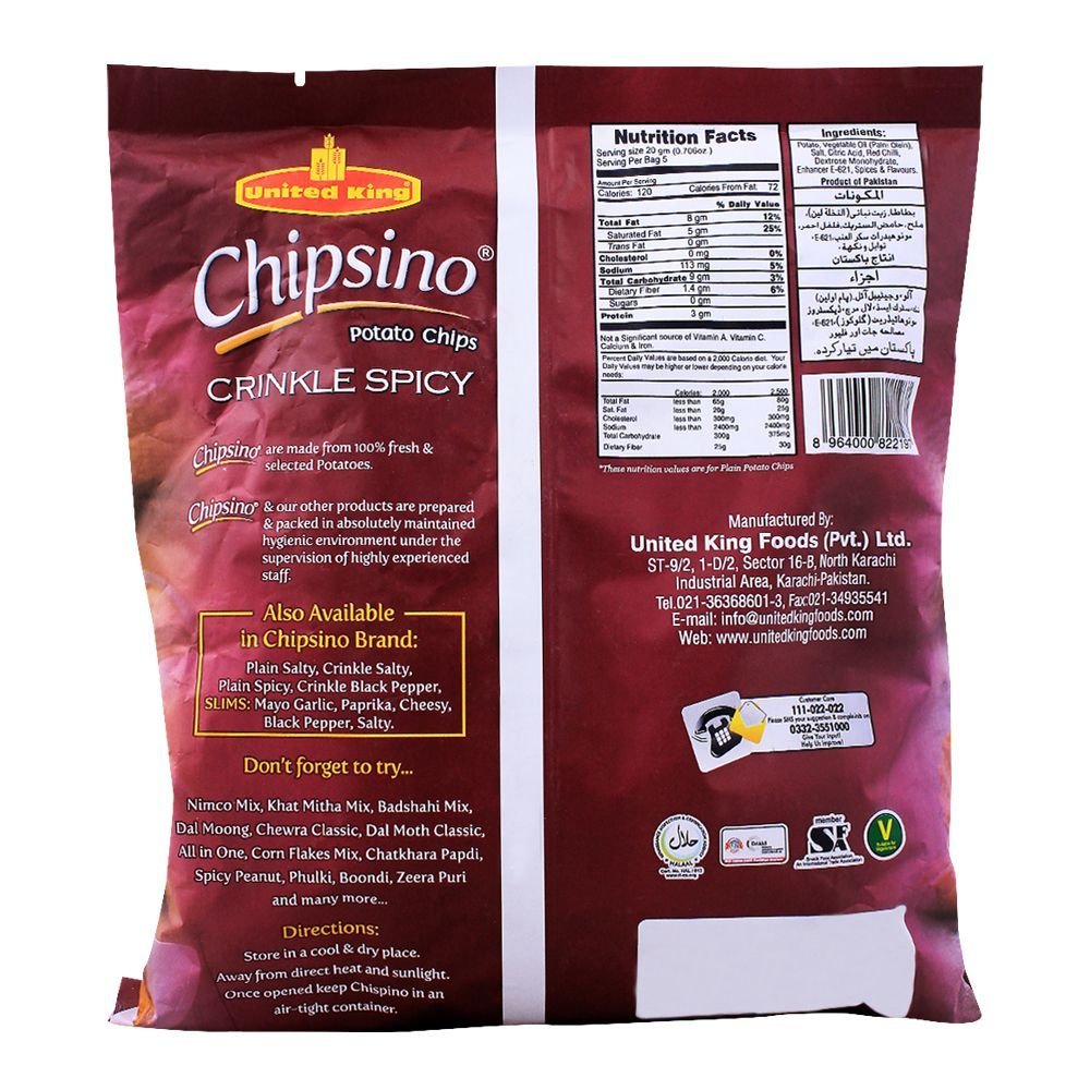 United King Chipsino Crinkle Spicy Potato Chips 100g